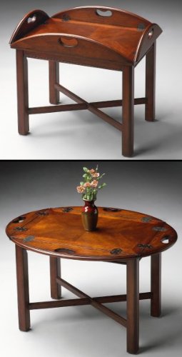 Finish:Plantation Cherry Butler Table Selected solid woods, wood products and choice cherry veneers. Four-way matched cherry veneer top with cherry veneer end grain border. Four hinged sides with antique brass finished flush hinges. Readmore .. .